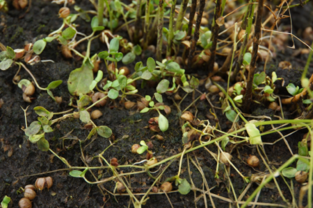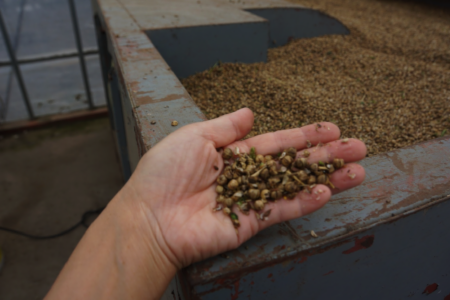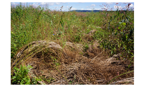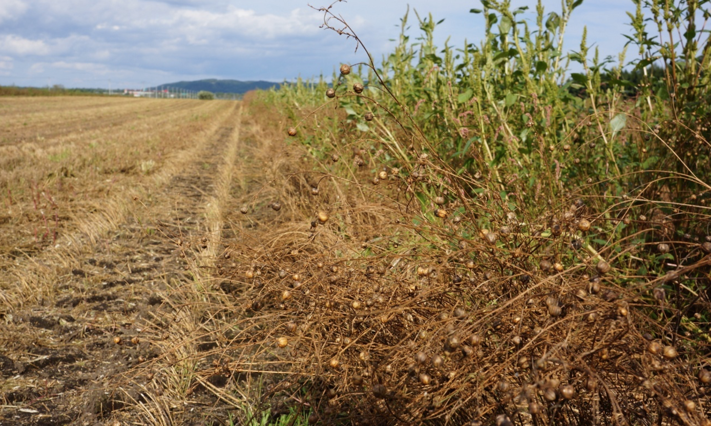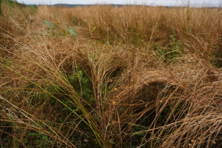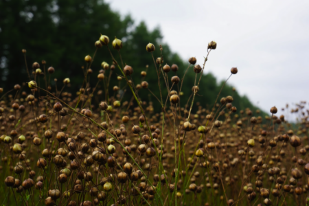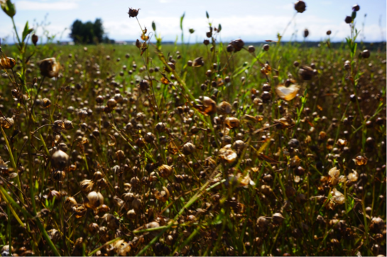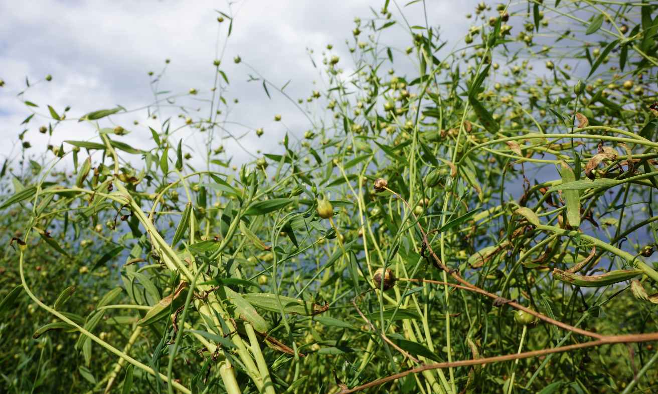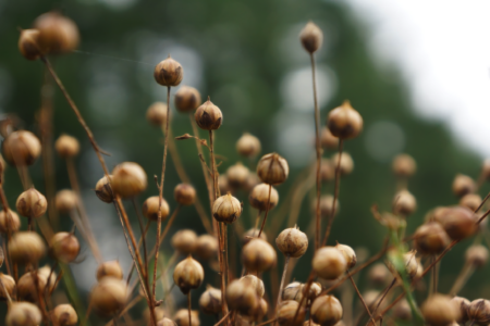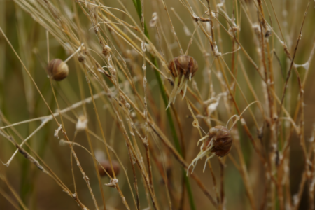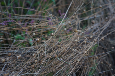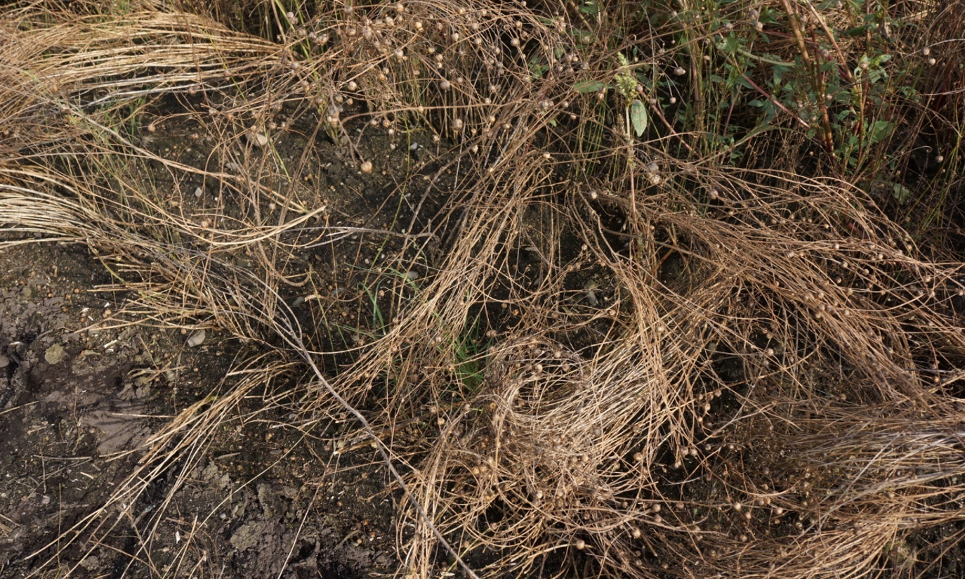 倒れた亜麻は、雨風等で“実”が落ちたり、未熟実だったりで…
