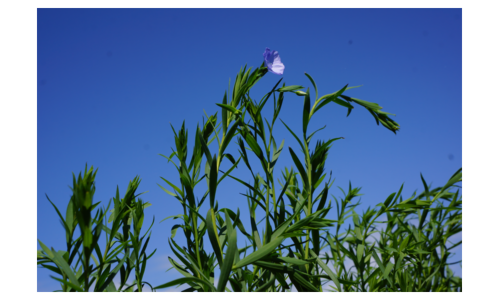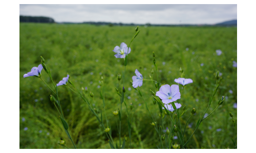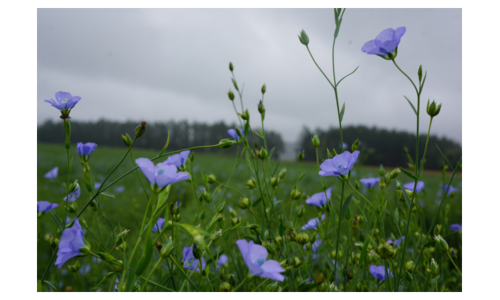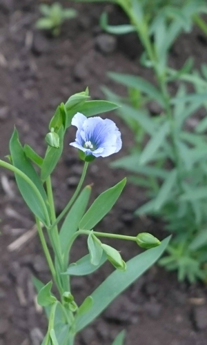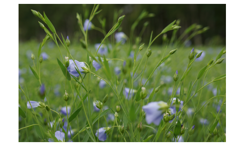 花色が手前に見え、亜麻の本来持っている茎のしなやかさと