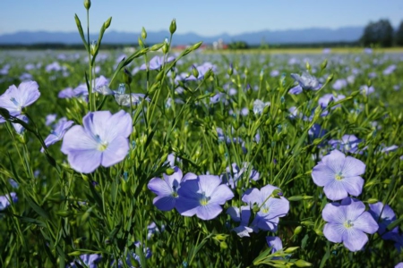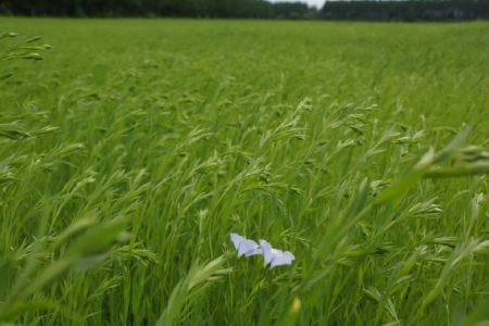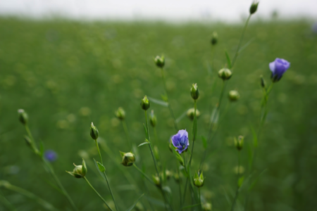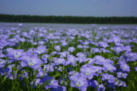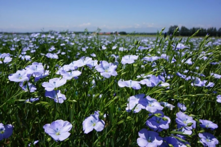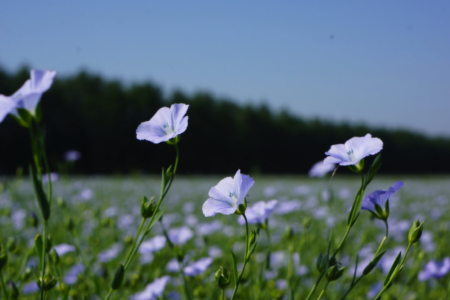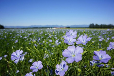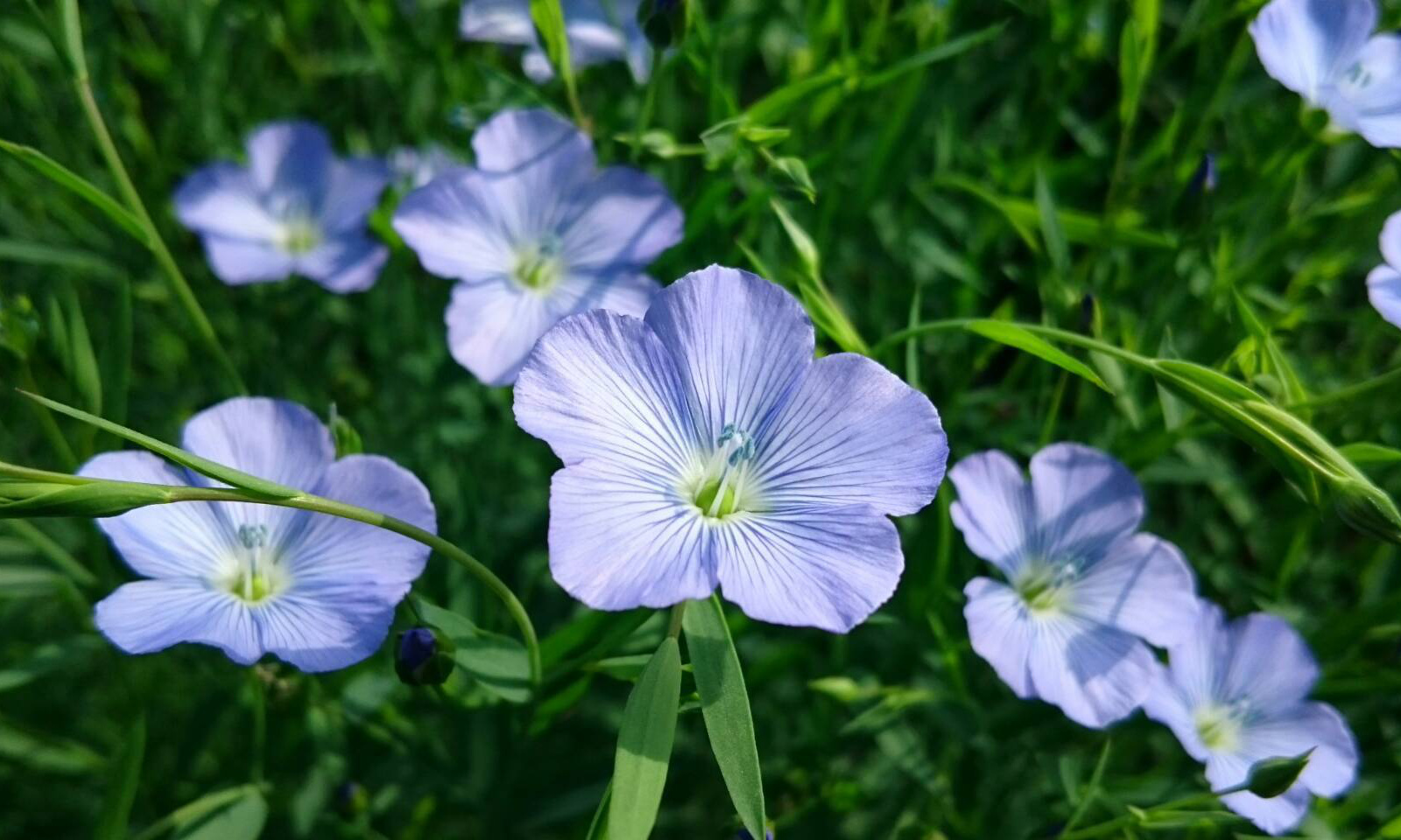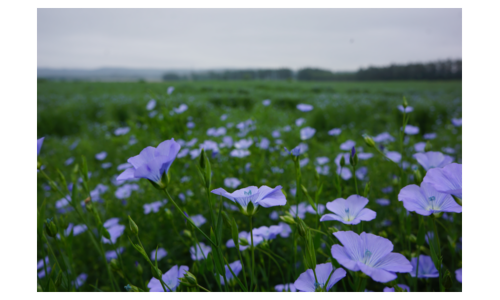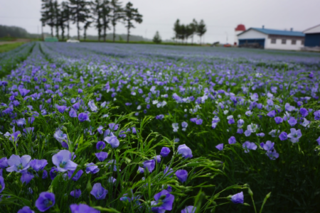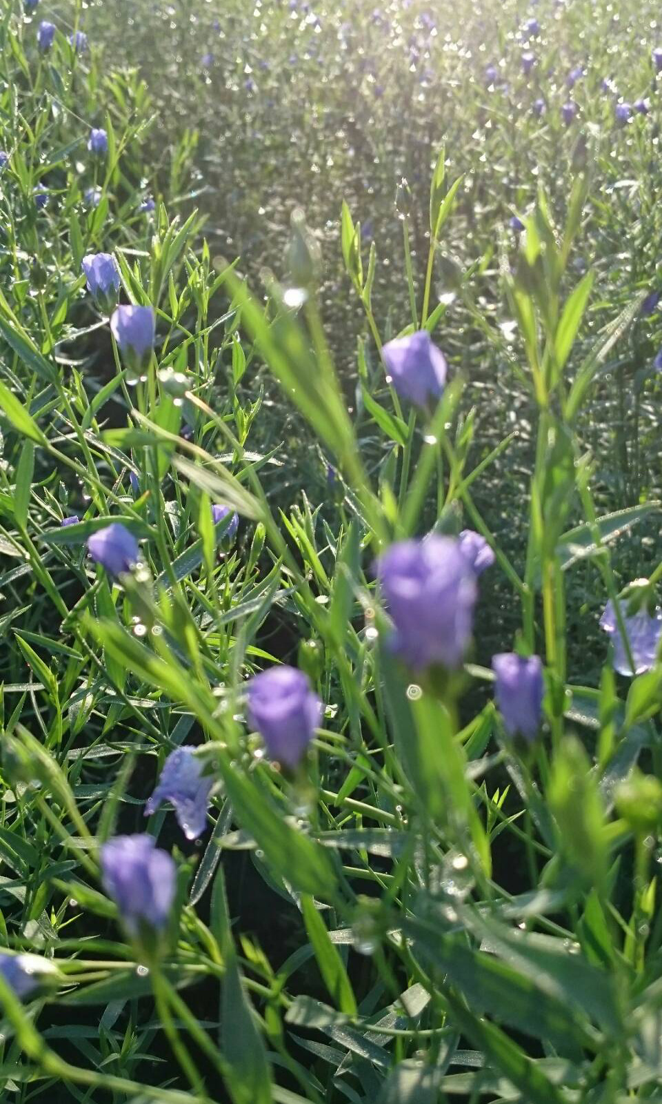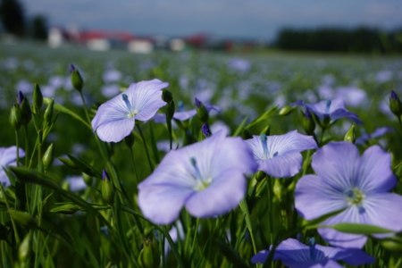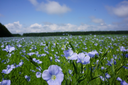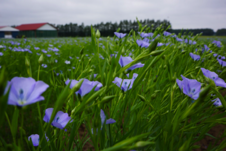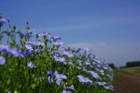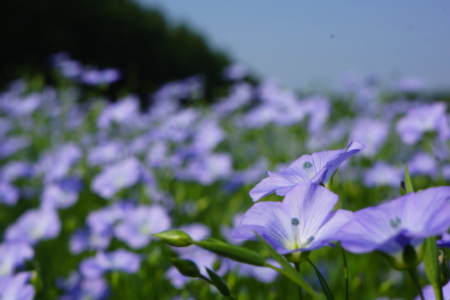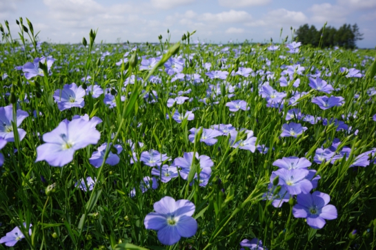待ちに待った亜麻の開花!約3週間をかけて、咲き競います。