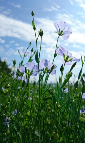 「花は可憐で美しく、実は亜麻仁油やパンに、化粧品、サプリメントにも成り、オメガ3で老化防止や肌、若返りにも調べた所、とても良い様ですね!」私達も日々油を味噌汁等に~是非皆様もお試しあれ!こちらも、次回六次化のお話の中で。