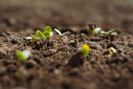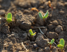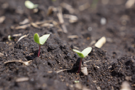 大地に顔を出しました。ちっちゃい”芽”に夢が膨らみます。