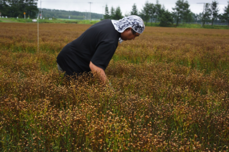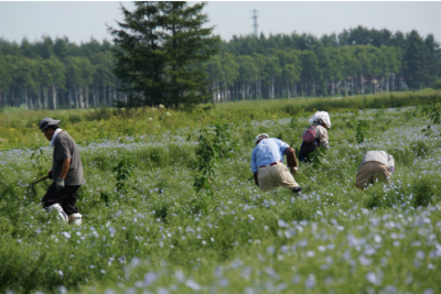 もう一度コンバインに通す等「亜麻ちゃん」は、とても手の掛る作物?