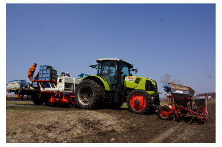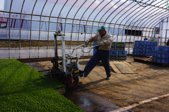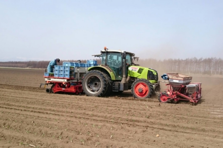 上更別の育苗センター(種と土入り)から、運ばれて来ました‼