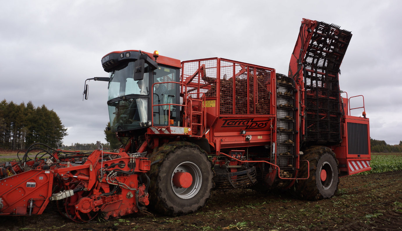 我が家では、5年前から自走式4畦ビートハーベスター「ドイツ ホルマー社製 テラドス」を使用し、